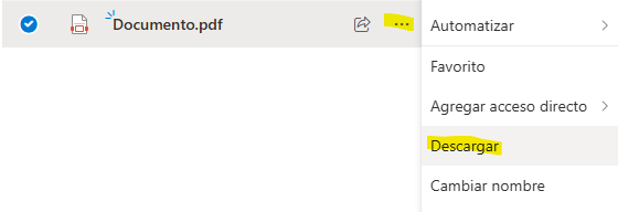 - Seleccionar el fichero online y pulsar en los tres puntitos. Pulsar "Descargar"